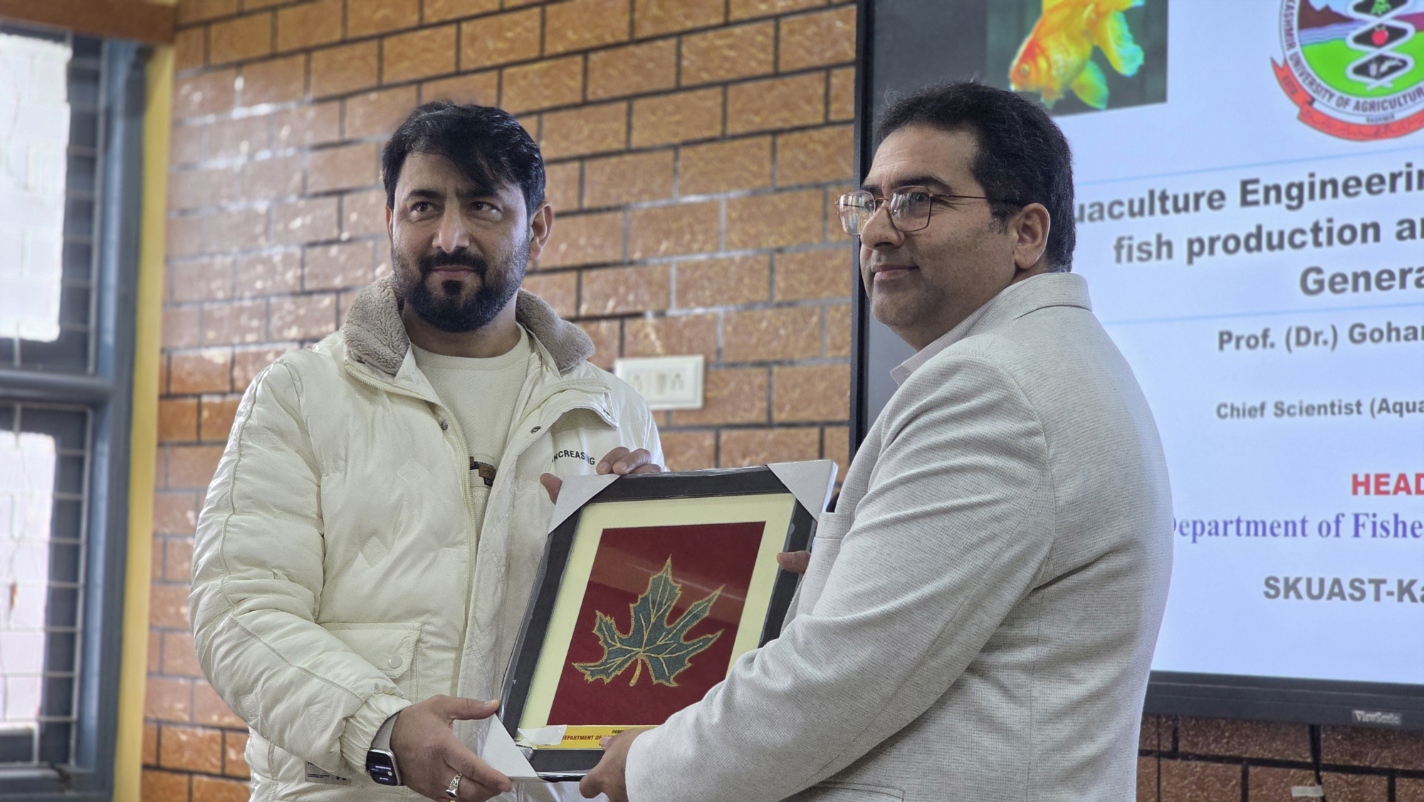 Resource persons from the Faculty of Fisheries, SKUAST-Kashmir, the Department of Fisheries, J&K Government, and the Department of Zoology delivered thematic lectures through the week. Key sessions covered topics such as “Use of Local Less Expensive Feed Ingredients in Fish Feed,” “Fish Culture: A Great Entrepreneurship Venture,” “Aquaculture Engineering Interventions in Fish Production and Employment Generation,” “Feed-Efficient Farming: A Circular Approach to Small-Scale Pond Management,” “Trout Farming in Jammu and Kashmir,” “Different Rearing Methods for Successful Rearing,” “Management of Fish Ponds,” and “Different Schemes for Development of Fish Farming in J&K.”